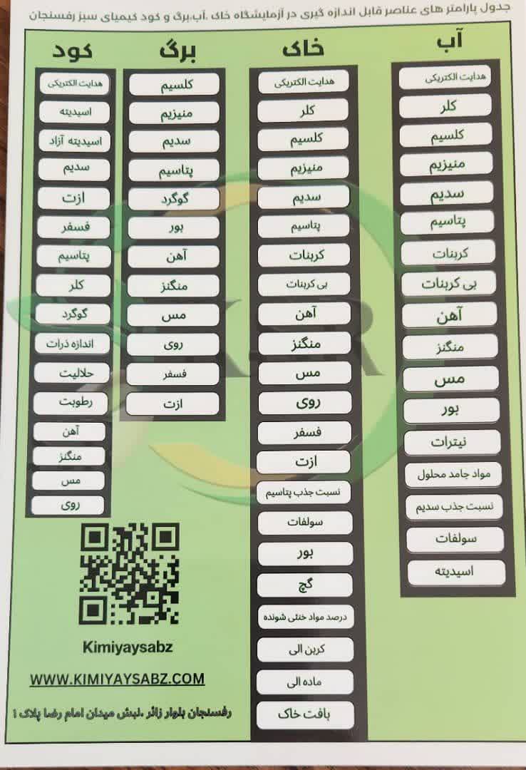 آزمایشگاه آنالیز کامل گیاه ، خاک ، آب و کود آمادگی دارد تا خدمات زیر را ارائه دهد: در گیاه > اندازه گیری ازت و، فسفر ، پتاسیم ، سدیم...